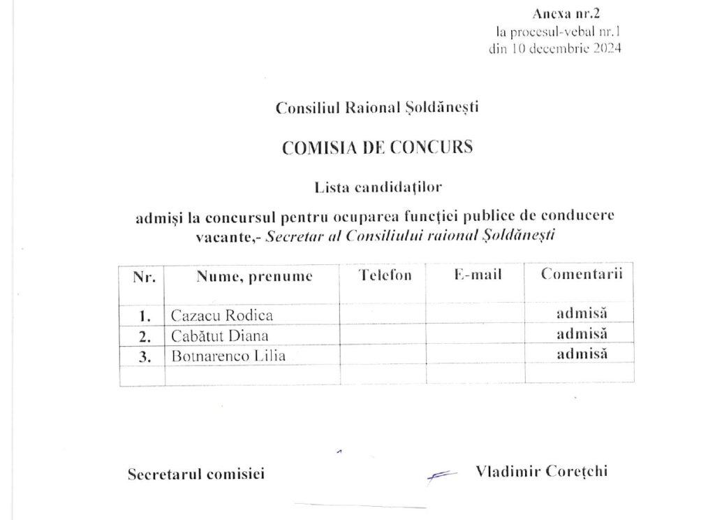 Lista candidaţilor admişi la concursul pentru ocuparea funcţiei publice de conducere vacante – secretar al Consiliului raional 10 decembrie 2024 Tweet